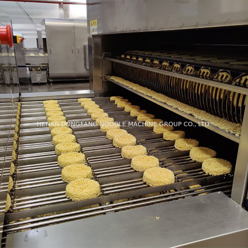 Συνεχής μίξη--Ομογενοποίηση--Ωριμάστε τη μεταβίβαση--Κύλισμα--Βράσιμο στον ατμό--Τέντωμα και κοπή--Αυτόματες φύσηγμα και διαμόρφωση--Τηγάνισμα--Ψύξη--Συσκευασία
